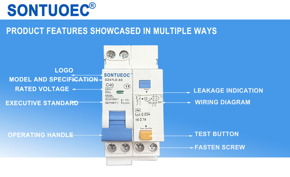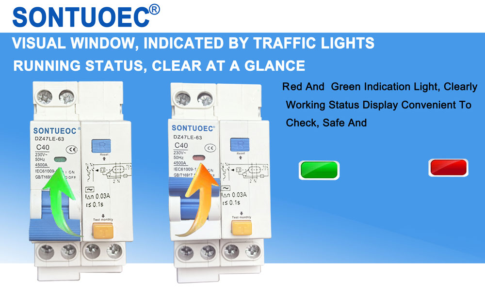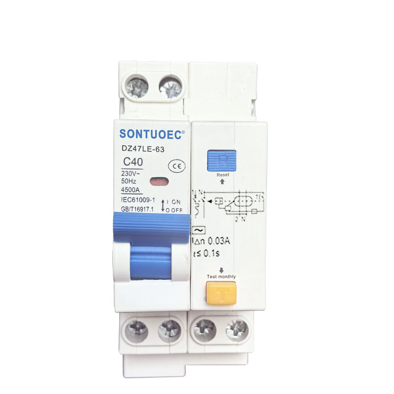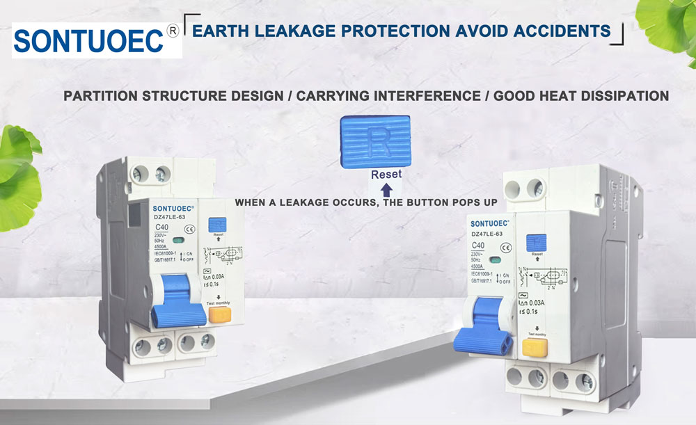 SONTUOEC є одним із китайських постачальників/виробників, що спеціалізується на виробництві різних малих електроприладів. DZ47LE застосовується до лінії змінного струму 50/60 Гц номінальною напругою 230 В для однополюсного двопроводу, 2 полюса або 400 В для 3 полюса, 3 полюса 4 дроту. 4 полюси і номінальний струм до 63А. Він може захистити лінію і двигун від перевантаження та короткого замикання Це може також використовувати для рідкісного перетворення лінії і рідкісного запуску двигуна. Він відповідає стандартам IEC61009.1.