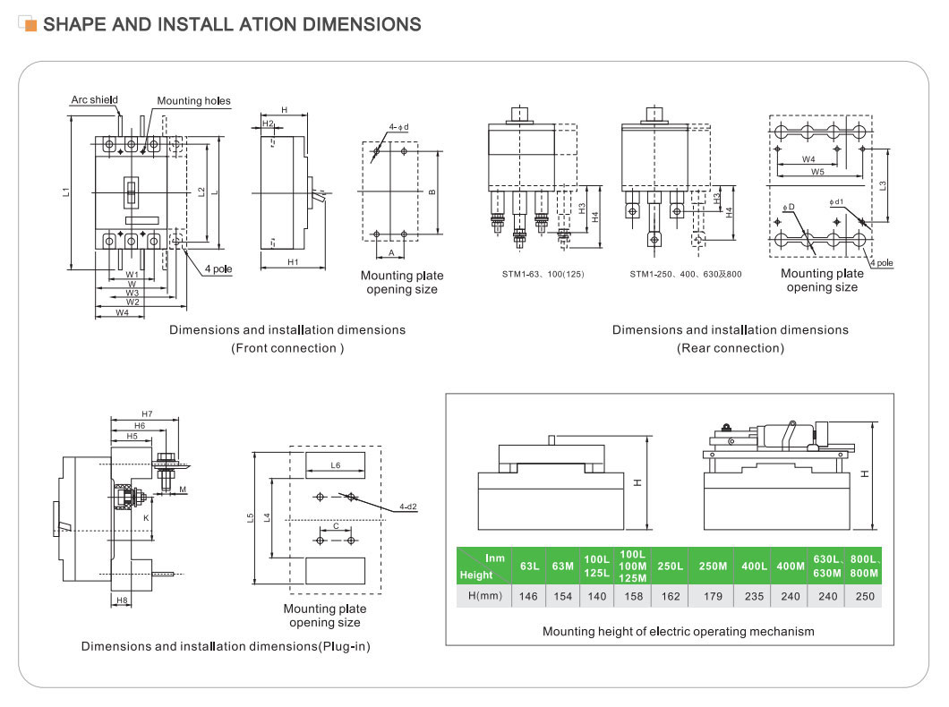 Застосування: Електричні автоматичні вимикачі в литому корпусі широко використовуються в електричних системах у житлових, комерційних, промислових і транспортних сферах. У житлових приміщеннях він використовується для захисту домашніх схем і електричного обладнання; в комерційній сфері використовується для захисту електричних систем великих будівель і комерційних приміщень; у промисловій сфері він використовується для контролю та захисту безпечної роботи заводського обладнання та машин; у сфері транспорту використовується для захисту стабільної роботи світлофорів, залізничних сигналів та іншого обладнання.